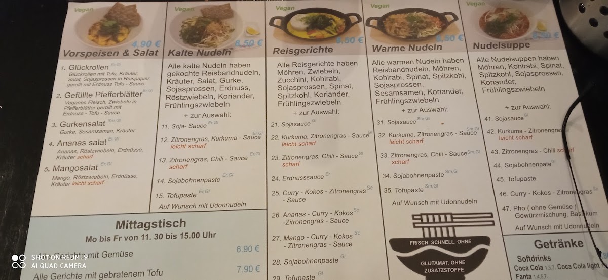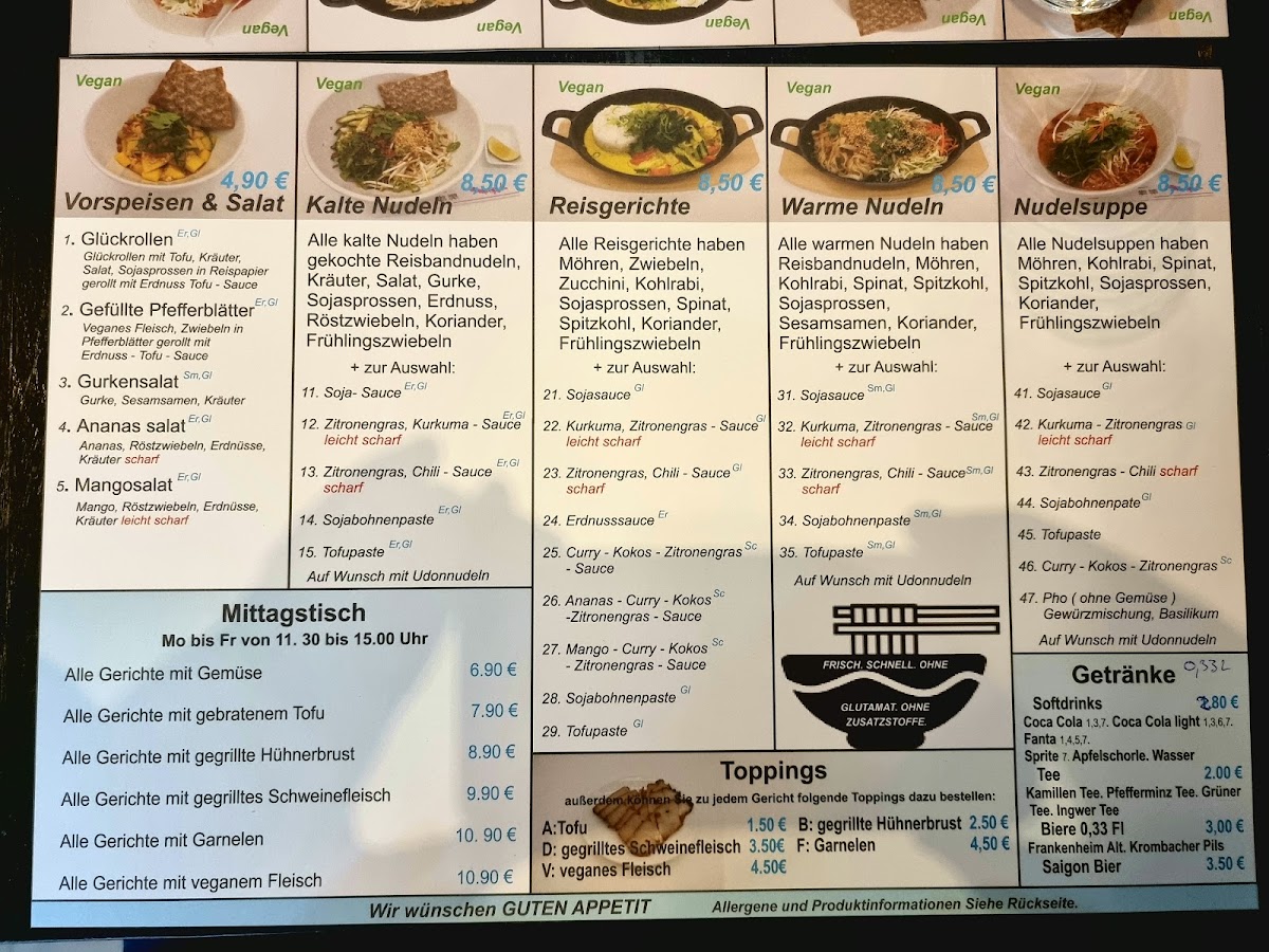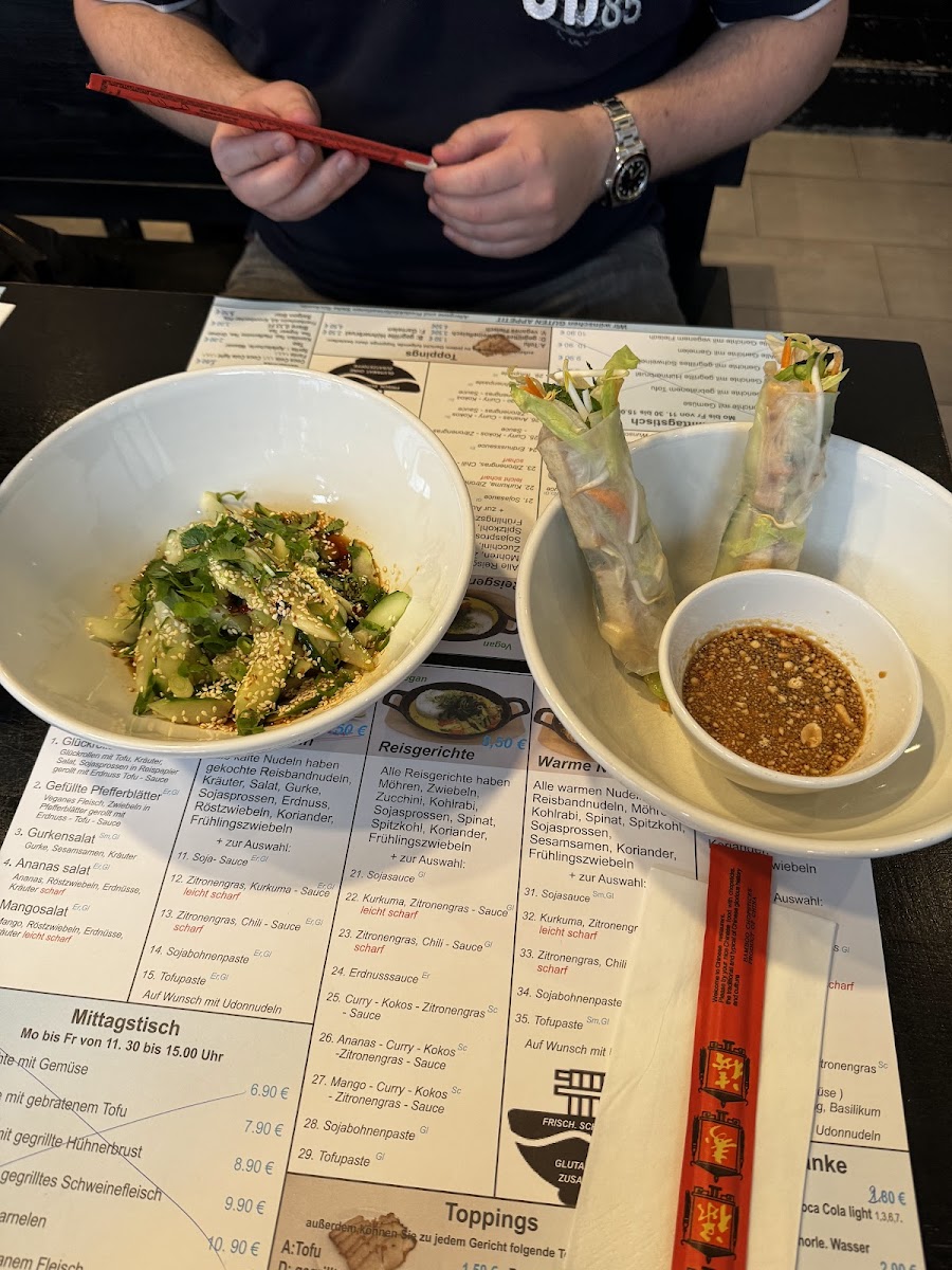 “ When we walked in we were told they only accept cash. And that probably the only negative i have to say about the place. They had a fully vegan menu card and one with mixed options. All in german, but easy enough to translate. We ordered 2 cold noodle bowls one with shrimp one with chicken. Both really good, you could smell them preparing the food. We didn't finish our meal (partially due to eating so much during the day and partly because it was such a warm day) so we had the remainder to go. Very sweet service, and very good food. Would definitely go back here! ”